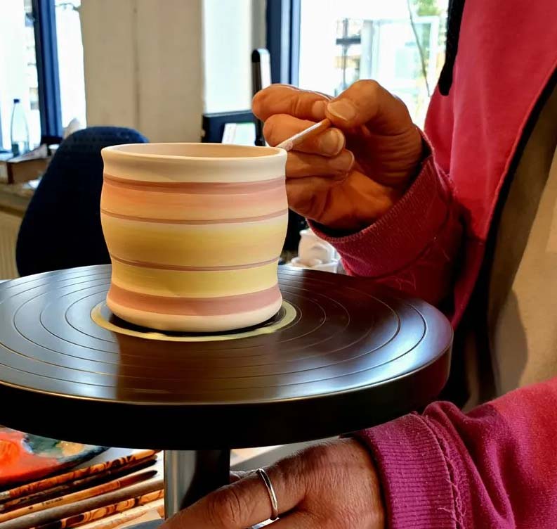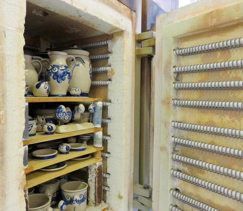 Hier dreht der Meister noch selbst. Die Arbeitsplätze an den Töpferscheiben sind der Ort, an dem sich die schöpferische Kraft entfaltet. Von Gebrauchskeramik, liebevoll gestalteten Dekorationsobjekten bis hin zu ganz erstaunlichen künstlerischen Werken – hier entstehen unter den Händen des Meisters Peter Tauscher und seiner Mitarbeiter die begehrten Stücke. Große Brennöfen, Glasur- und Malereiarbeitsplätze komplettieren die Werkstatt, die man nicht nur besichtigen kann, sondern in der man auch im Rahmen eines Töpferkurses selbst sein Geschick ausprobieren kann.